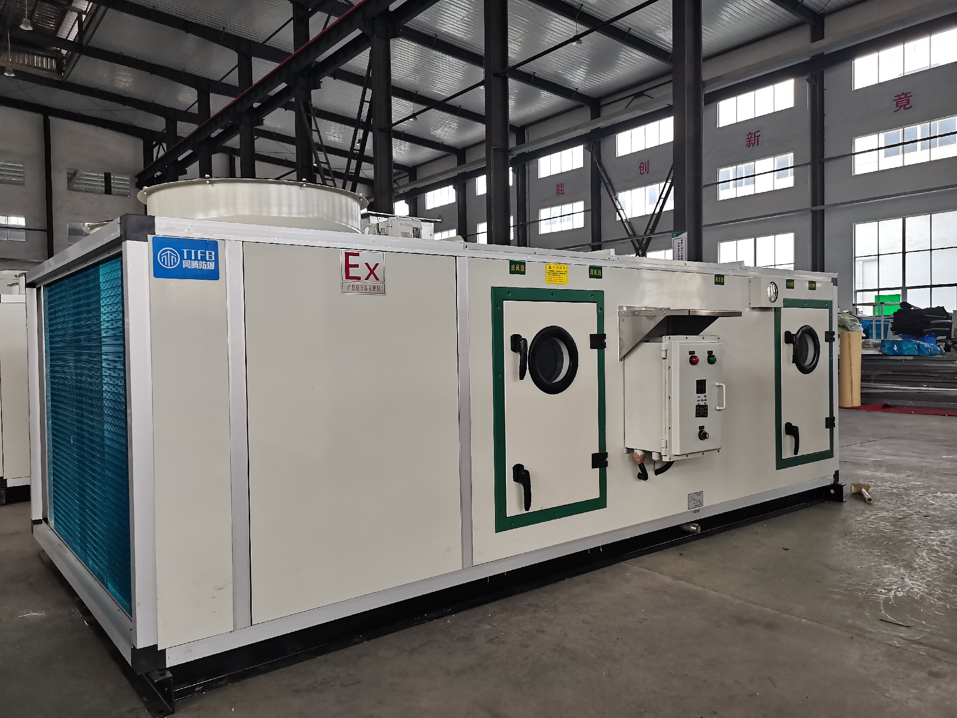 同恩牌防爆屋頂式空調(diào)機(jī)組為全空氣系統(tǒng),是集制冷、制熱、恒溫恒濕、空氣凈化等功能于一體的大中型空調(diào)設(shè)備。該型屋頂機(jī)系列產(chǎn)品集成了直膨組合式空調(diào)與風(fēng)冷熱泵技術(shù),實現(xiàn)了制冷與空氣調(diào)節(jié)集中式綜合控制等優(yōu)點(diǎn),具有節(jié)能、系統(tǒng)簡單、性能穩(wěn)定等特點(diǎn),的微電腦控制使得空氣性能與品質(zhì)得到了佳的控制;機(jī)組的壓縮冷凝段采用板塊拼裝的方式,空氣處理段各功能段采用鋁合金框架與高壓發(fā)泡雙壁結(jié)構(gòu),具有技術(shù)成熟、設(shè)計靈活、功能段組合多樣、安裝簡便、易于控制等特點(diǎn)。