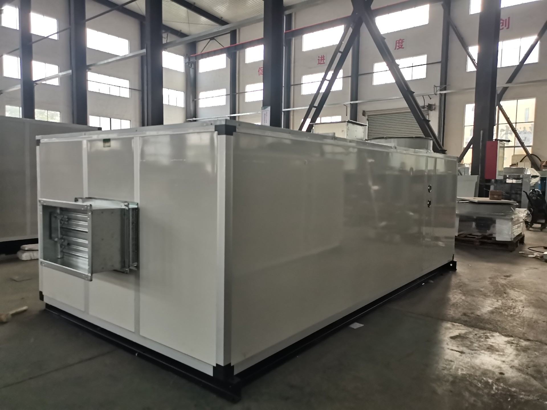 整體式機(jī)組設(shè)計,結(jié)構(gòu)緊湊,精心設(shè)計之機(jī)組框架,簡單輕巧,外觀典雅大方,操作空間大,機(jī)組均可實現(xiàn)常規(guī)不超寬不式運(yùn)輸。機(jī)組結(jié)構(gòu)件的自動噴涂線全過程處理及噴塑、鋁合金框架、高壓發(fā)泡彩鋼保溫面板以及戶外型特的防雨結(jié)構(gòu)設(shè)計,確保機(jī)組戶外使用的防腐、防銹,無漏雨之虞。